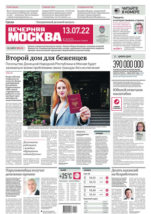 «Вечерняя Москва» — ежедневная российская вечерняя газета, старейшее из вечерних изданий в России, учрежденное в 1923 году. Выходит пять дней в неделю, кроме субботы и воскресенья. Отличается тем, что рассказывает о событиях еще не завершившегося дня. Оперативно освещает хронику и особенности жизни Москвы, охватывает все слои общества и большинство профессиональных и возрастных групп читателей.Издание представлено тремя выпусками – утренним ежедневным, вечерним (выходит три раза в неделю), еженедельным (выходит по четвергам).
