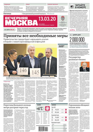 «Вечерняя Москва» — ежедневная российская вечерняя газета, старейшее из вечерних изданий в России, учрежденное в 1923 году. Выходит пять дней в неделю, кроме субботы и воскресенья. Отличается тем, что рассказывает о событиях еще не завершившегося дня. Оперативно освещает хронику и особенности жизни Москвы, охватывает все слои общества и большинство профессиональных и возрастных групп читателей.Издание представлено тремя выпусками – утренним ежедневным, вечерним (выходит три раза в неделю), еженедельным (выходит по четвергам).