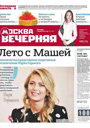 «Вечерняя Москва» — ежедневная российская вечерняя газета, старейшее из вечерних изданий в России, учрежденное в 1923 году. Выходит пять дней в неделю, кроме субботы и воскресенья. Отличается тем, что рассказывает о событиях еще не завершившегося дня. Оперативно освещает хронику и особенности жизни Москвы, охватывает все слои общества и большинство профессиональных и возрастных групп читателей.Издание представлено тремя выпусками – утренним ежедневным, вечерним (выходит три раза в неделю), еженедельным (выходит по четвергам).