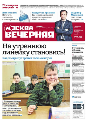 Вечером на страницах «Вечерки» появляются эксклюзивные интервью ньюсмейкеров культуры и шоу-бизнеса, репортажи журналистов по вечерней Москве, афиша нашего города. Один раз в неделю выходит специальный студенческий вечерний номер.